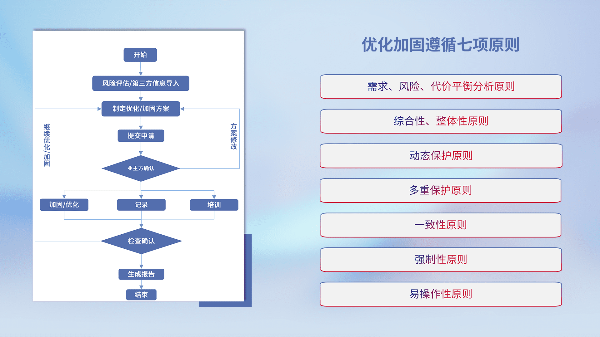 最大程度利用现有资产,,对评估发现的问题进行封堵与整改,,,,防止漏洞被利用,,,,提升整体网络安全性,,,为客户带来高标准的优化加固服务。。。